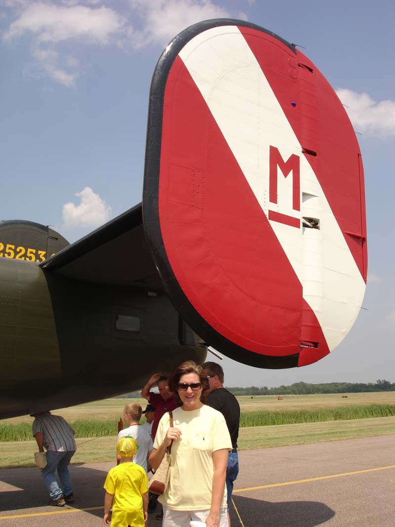 America's only flying B-24 continues soaring through its native skies as part of the annual Wings of Freedom Tour with its sister ship, the B-17 Flying Fortress. A product of a multi-million dollar restoration, the B-24 stands testiment to the strength of the 1940's engineering that built it and helped it survive through many years of hardship. Pat's Note: The following pictures were taken by Pat & Cherie Ranfranz on July 17, 2005 at the Anoka Co Airport in Blaine, Minnesota. Click on the thumbnail images below to view the full-sized image.