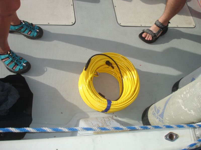 We teamed up with a marine biologist by the name of Brian Green and the Manta Ray Hotel dive shop manger, Jan Sledjens, to checkout some of the deeper sonar targets we could dive. Brian and Jan made deep dives to a few of the sites (200-250 feet) with us while I stopped at "about" 130 feet. I think I went a few feet beyond what I wanted to hit. Brian has the ability to use a re-breather but he was waiting for some replacement parts during our trip. Brian and Jan agreed to continue to dive my uncle's crash site location after we departed. Brian will spend some significant time diving the site at deep depths with his re-breather. Brian is very likely going to be the one who discovers my uncle's plane with his re-breather or the one-man submarines he might be bringing to Yap in the near future for his marine biology work. In the end I truly believe that Brian and/or Jan will find my uncle's plane and the Coleman crew. I can't thank everyone (Mark, Brian, Jan, etc.) for all their help. I was so pleased to see how dedicated they were to help us during the trip and moving forward. I feel fortunate to have had the opportunity to work with this group and appreciate all the help. Please see the following pictures taken over a number of days showing our sonar search and deep diving attempts. Please feel free to submit comments about the airstrip to Pat at: pat@missingaircrew.com Click on a thumbnail image below to view the full sized image.